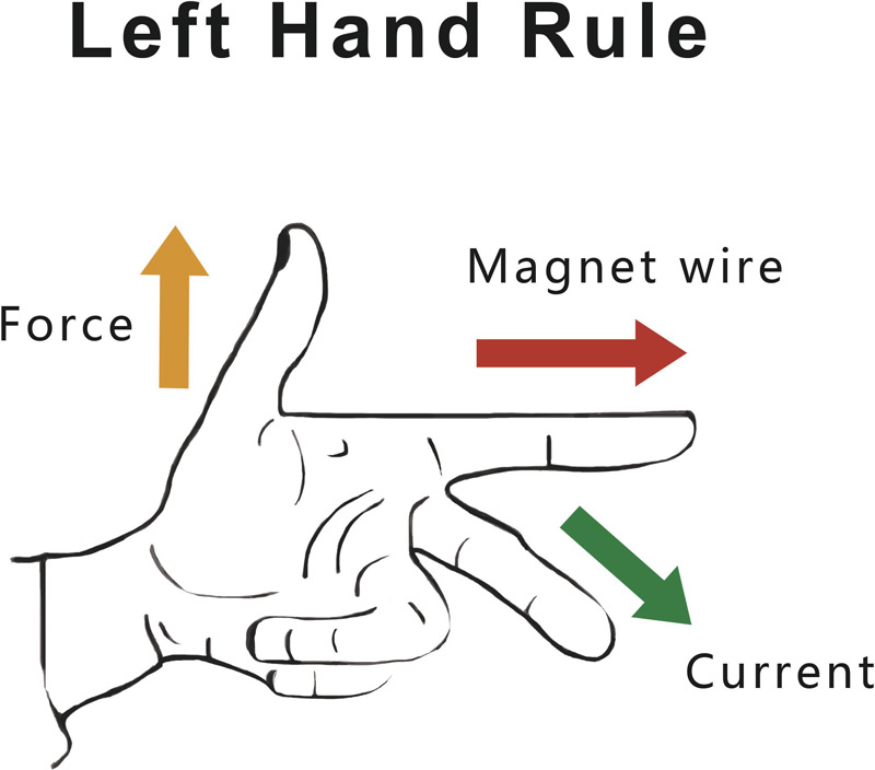 La fuerza electromagnética que actúa sobre un conductor por el que circula corriente es proporcional a la corriente que circula por él, a su longitud efectiva en el campo magnético y a la densidad de inducción magnética del campo en la zona donde se encuentra el conductor. Es decir, F=BLI. La dirección de la fuerza electromagnética se determina mediante la regla de la mano izquierda.